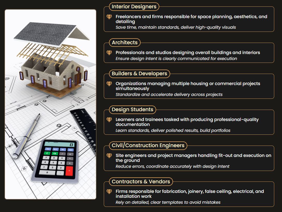 No matter if you are a newbie or you already have some experience in the industry, if you are into interior or architecture business that needs expertise or do any work for the clients then this Interior Detail Drawing Mastery is perfect helping collection to increase your revenue to streamline each stage of the business.